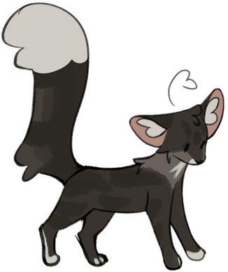 protective, loving, confident - OPINIONATED, HEADSTRONG - over-zealous, stubborn, short-tempered PERSONALITY Peakit is a rather unique cat, having the self-assurance and confidence of a kit much older than her age. She trots this earth as if she's been around the block before, not daring to stop and think that maybe she doesn't always know what she's doing. She is a rather personable kit - wanting to get to know everyone in the nursery. The adventurous spirit dwells deep in her chest, and Peakit wants nothing more than to feed into it. Always wanting to explore outside the confines of the den, she's strong-headed and determined to discover every wonder the clan has to offer. Slippery and smart, Peakit is quite the handful to manage.Along with her strong spirit, Peakit struggles to see life outside of herself. She doesn't take direction well, always wanting to see if her way works first before she can even listen to others' inputs. She can be difficult to work with if you don't see eye to eye, but she will be far from mean about it. Just stubborn. She is capable of so much love and loyalty but she also packs a mean punch when others cross her or even dare to think little of her.Wanting to have her partner in crime with her at every moment, Peakit tries her hardest to recruit her brother in her misbehaving. She always wants to involve him wherever she can. Her family is the most important thing to her - so spending time with her precious brother is something she strives for. Wanting to bolster his confidence and aid in his self-advocacy, she really goes out of her way to make sure her brother is happy and taken care of.Another cat near and dear to little Peakit is her mother Quail! Seeing her mother be so strong and kind inspires Peakit to make her proud. She wants to be as regal and kind as her mother, and even though she struggles to keep herself in check, she has the spirit to live up to her mother's name and nature. Peakit always puts 110% into everything she does, and loving her family is her primary focus. APPEARANCE Adorned with a smokey, long coat, Peakit has a dull coloring with dark furs. She has her mother's accents of cream on her right cheek, the light streaks going down to her neck. She has very round features, from her fur to her face to her distinct ears. The first thing to note about the she-kit is her large round ears. Sitting tall on her head, her mouse-like ears are from her mother. They're almost as expressive as the kit herself, swerving with each thought and emotion that crosses her mind.Something that's almost as iconic as her large ears is her head whisker. Curved and prominent, she has a single, distinctive whisker that seems to always be seen. She loves her little whisker very much, since it matches her mother and brother! It's like she has a part of them with her always. Her fluffy tail is known to have rather round shapes akin to main coon fur, and Peakit tries her best to keep the behemoth of fur behind her neat and clean!Amongst the dark fur is small kisses of light, her cheek being lightly brushed with cream tones but also her tail tip and toes. Different on every paw, she has small accents of white. Because of her energetic, excitable nature, Peakit always has some sort of leaves or twigs stuck in her fur, and has the comforting scent of earth surrounding her. She never intentionally tries to adorn herself with accessories, they just seem to latch themselves onto her fur.Her build is average in size for her age, with a leaner composure. She wants to be big and intimidating one day, but for now she's just a little energetic kit.